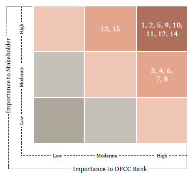 Any economic, social, and environmental aspect that has an influence on the Bank’s ability to create sustainable value is taken into consideration when formulating the Bank’s strategic direction and key priorities. These aspects are deemed material if they are both relevant and significant to our stakeholders and to the Bank. Significance considers the magnitude of the impact of these aspects and the likelihood of their occurrence.